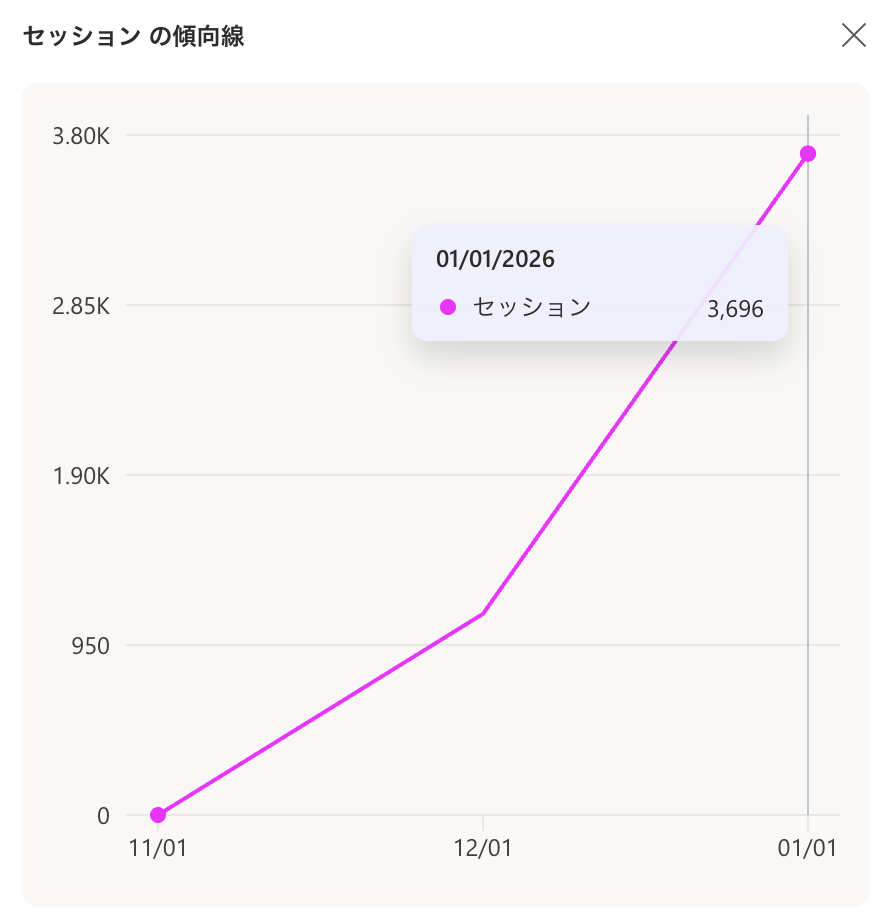 2026年1月1日時点で月間3,696セッションを獲得。