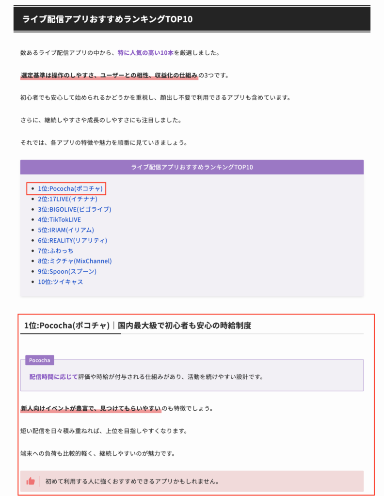 おすすめのライバー事務所やライブ配信アプリ探している検討意欲の高いユーザーに対し、詳細を読む前に送客を促せます。