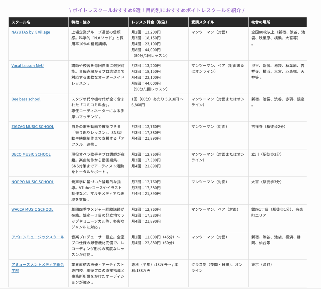 比較ボックス掲載イメージ(ボイトレスクールの例)
