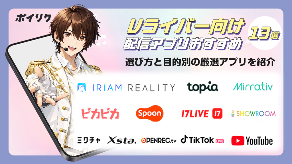 本記事では、主要な13種類のVライバー向け配信アプリについて、公式情報や一般的な利用傾向をもとに比較しつつ、失敗しにくい選び方のポイントを整理して解説します。
